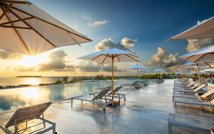- Six outdoor pools with sun loungers and ocean backdrops